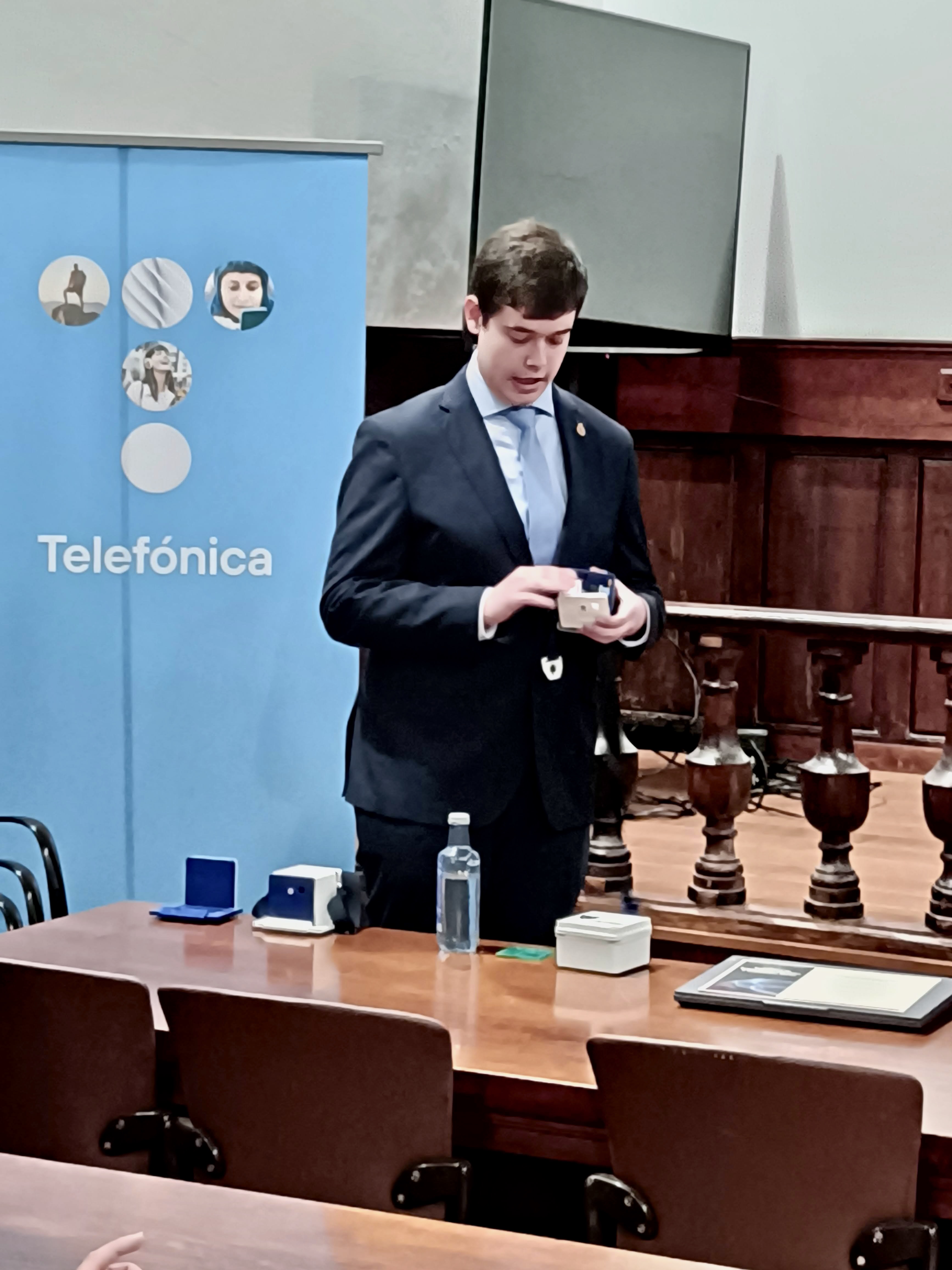 El primer premio ha sido otorgado a D. Juan Calles Rivas, por su trabajo titulado «Sistema de emergencia en entornos rurales (LoRa)». El jurado ha valorado su impacto vital en la conectividad rural y su solución escalable de bajo coste.